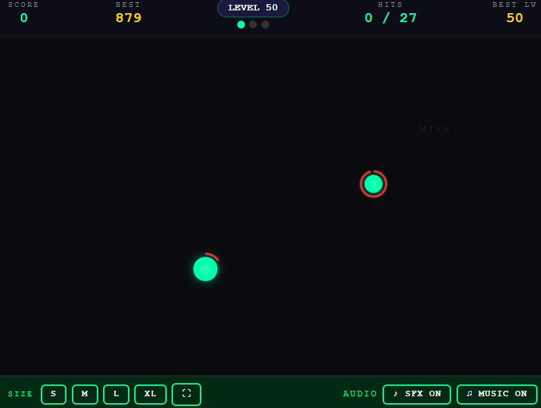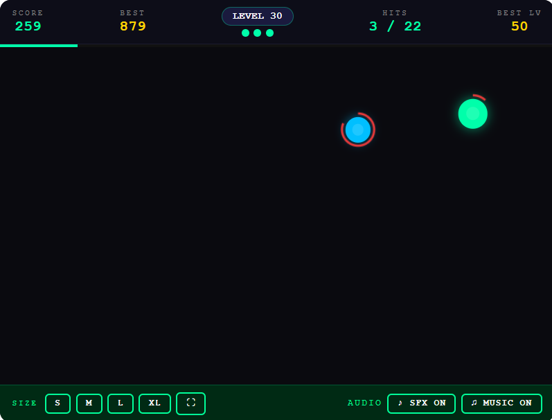 The game features 100 levels of escalating brutality. Targets shrink, timers tighten, and the pace becomes relentless as you climb. Level 100 is considered humanly impossible — but that won't stop you from trying.